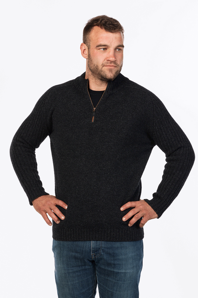 The Mount Jersey is a turtle-neck 1/2 zip jersey with ribbed sleeves. The Mount is a narrow fitting, chunky, medium-weight jersey with all the benefits of Possum & Merino. Nature's fibres blended with care: 60% Merino, 30% Possum, 10% Nylon. Made in New Zealand by MKM Originals.